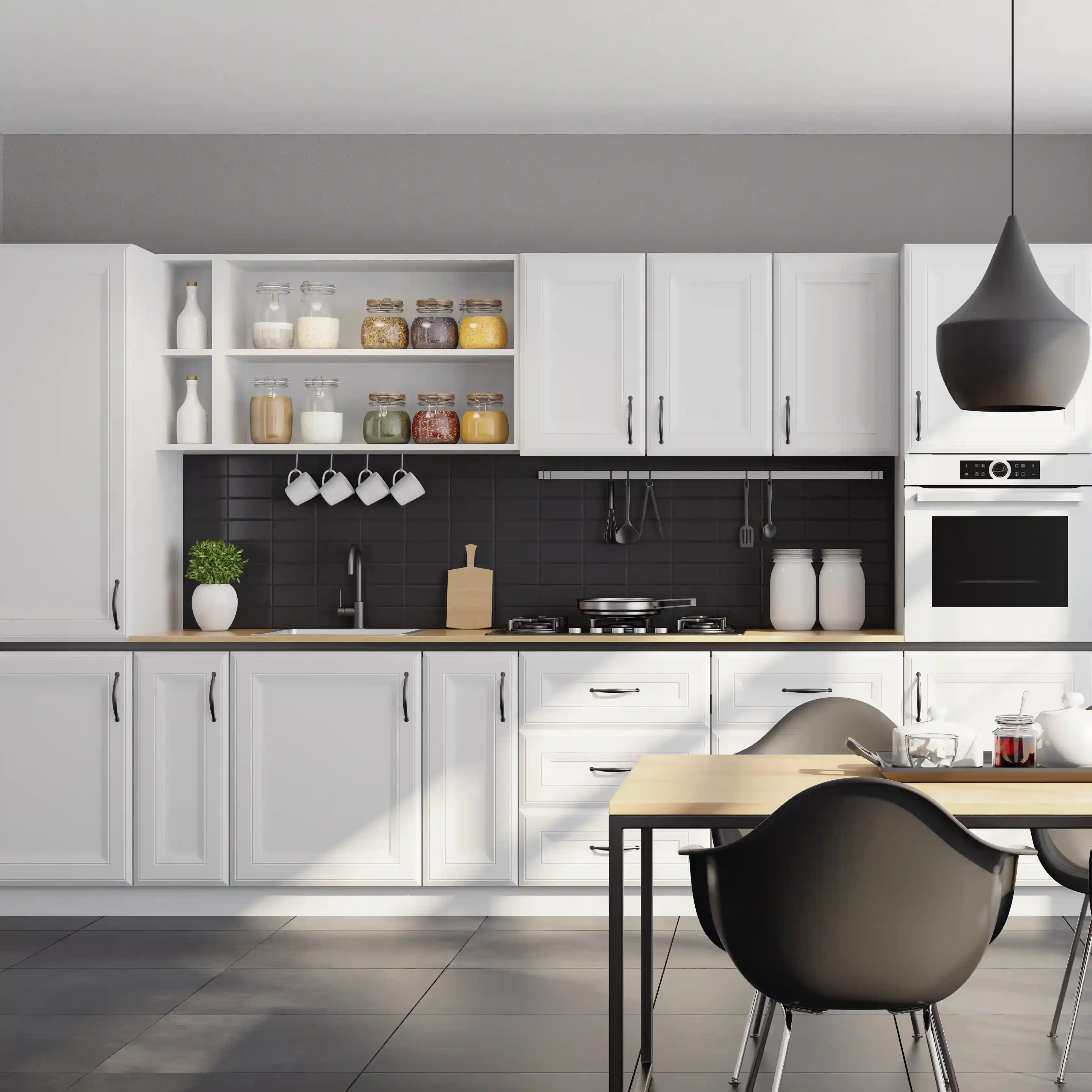 Shaker doors are usually made from MDF or solid timber and can be painted in almost any colour, making them highly customisable. They pair beautifully with various worktops, from solid wood for rustic charm or quartz for refined elegance. Their durability and broad appeal make them a smart investment for homeowners wanting a kitchen that'll age gracefully.